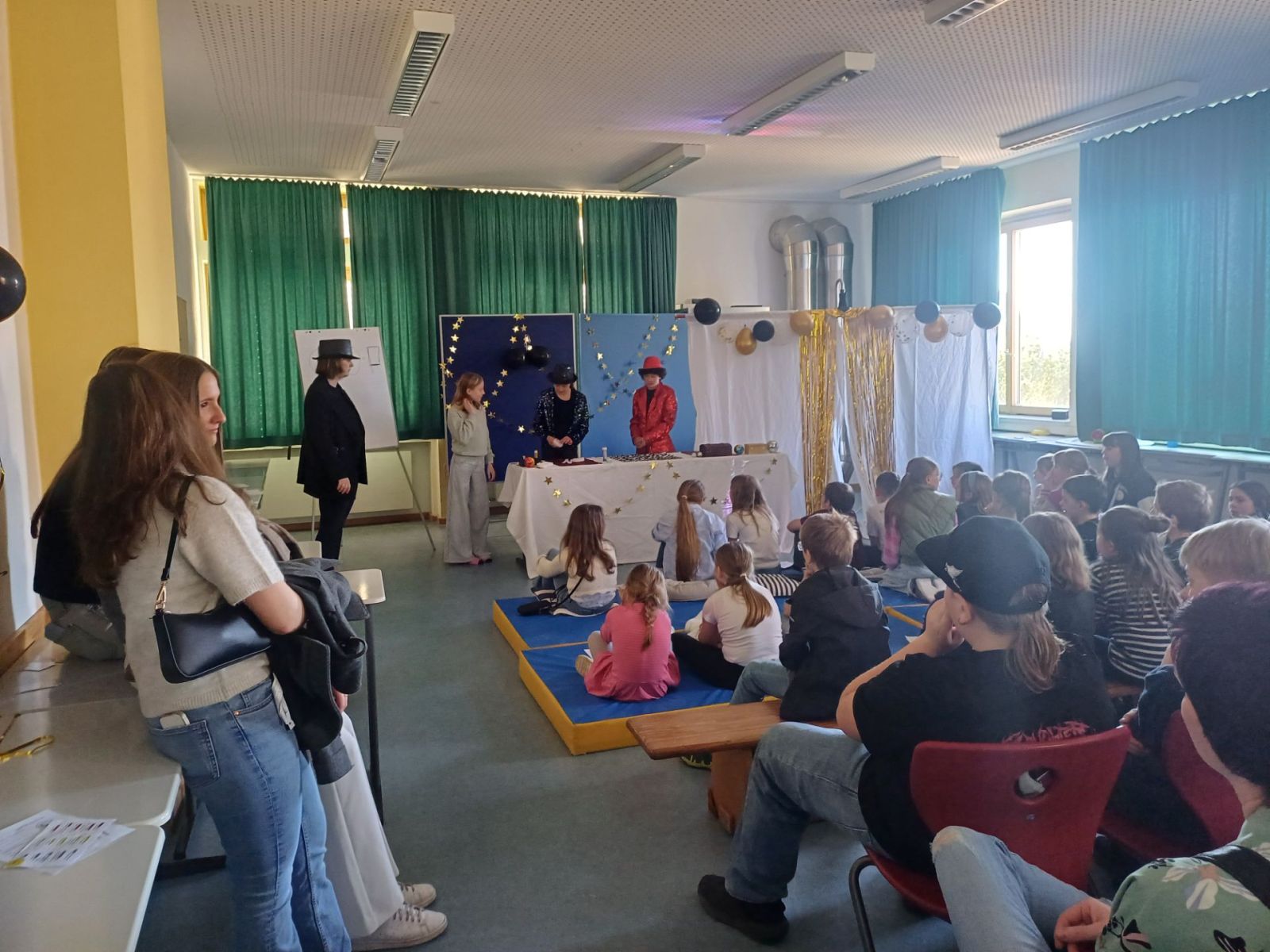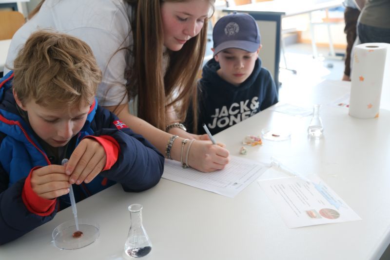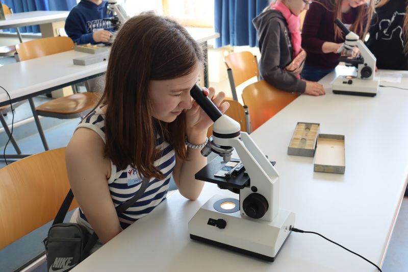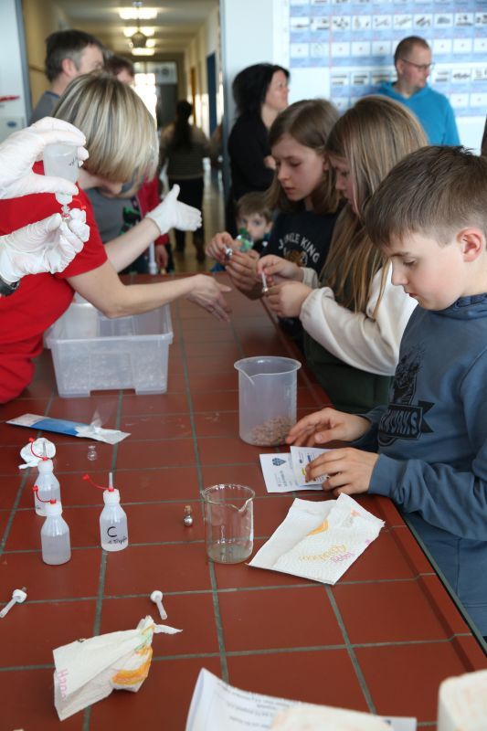 Wie jedes Jahr, so gab es auch in diesem einen Tag der offenen Tür an unserer Schule, bei dem sich zahlreiche Schüler, Eltern, interessierte Gäste und viele Ehemalige einfanden. Die verschiedenen Fachschaften präsentierten ein buntes Programm. Geboten waren französische Outdoor-Spiele im Lindengarten und ein interaktives Frankreich-Quiz, eine Englisch-Werkstatt, eine mathematische Zaubershow, einen sportlichen Parcours und Badminton in der Sporthalle, tschechisches Spielen und Basteln, naturwissenschaftliche Versuche in Physik, Chemie und Biologie, einen Einblick in das Robotik-Tagesgeschäft, Stykz-Animation in IT, Kunst im Keller, ein Exit-Game analog und digital im Fach Deutsch, ein römisches Fotoshooting in Geschichte, religiöse Wegfindung und Lesezeichenbasteln in der Schülerbibliothek, ein Flaggen- und Länder-Quiz in Geographie, eine Tombola der Schülerfirma und eine Ausstellung von Projektarbeiten der 9. Jahrgangsstufe. Tutoren standen an den Info-Ständen den Besuchern mit Rat und Tat zur Seite. Außerdem stellte sich die OGTS (Nachmittagsbetreuung) vor. Die Band der Realschule und die Big Band spielten in der Aula zwei Konzerte, die neunten Klassen versorgten die Besucher mit Speis und Trank.