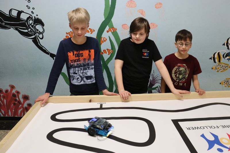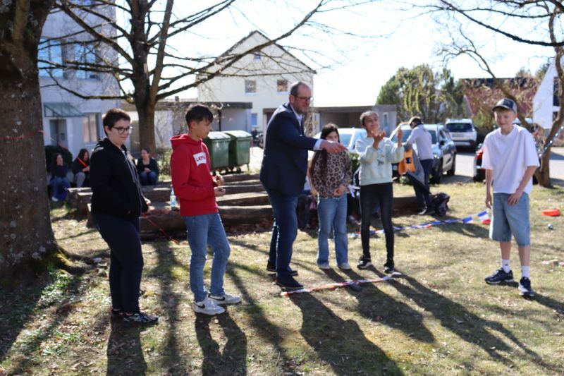 Wie jedes Jahr, so gab es auch in diesem einen Tag der offenen Tür an unserer Schule, bei dem sich zahlreiche Schüler, Eltern, interessierte Gäste und viele Ehemalige einfanden. Die verschiedenen Fachschaften präsentierten ein buntes Programm. Geboten waren französische Outdoor-Spiele im Lindengarten und ein interaktives Frankreich-Quiz, eine Englisch-Werkstatt, eine mathematische Zaubershow, einen sportlichen Parcours und Badminton in der Sporthalle, tschechisches Spielen und Basteln, naturwissenschaftliche Versuche in Physik, Chemie und Biologie, einen Einblick in das Robotik-Tagesgeschäft, Stykz-Animation in IT, Kunst im Keller, ein Exit-Game analog und digital im Fach Deutsch, ein römisches Fotoshooting in Geschichte, religiöse Wegfindung und Lesezeichenbasteln in der Schülerbibliothek, ein Flaggen- und Länder-Quiz in Geographie, eine Tombola der Schülerfirma und eine Ausstellung von Projektarbeiten der 9. Jahrgangsstufe. Tutoren standen an den Info-Ständen den Besuchern mit Rat und Tat zur Seite. Außerdem stellte sich die OGTS (Nachmittagsbetreuung) vor. Die Band der Realschule und die Big Band spielten in der Aula zwei Konzerte, die neunten Klassen versorgten die Besucher mit Speis und Trank.